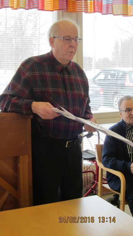Puheenjohtaja Veijo toivotti osanottajat tervetulleiksi muistelutilaisuuteen Kappalaan 20.01.2016